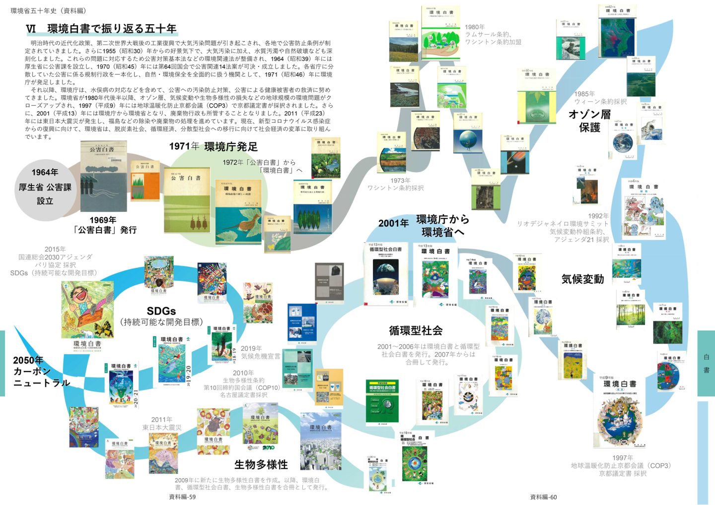 やや古い資料ではありますが、環境省は「環境省五十年史」(令和3年12月発行、補遺版 令和5年7月))(※1)を公開しています。