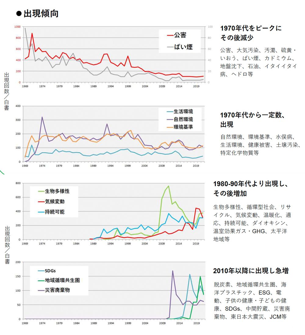 図2は、環境白書に登場する環境関連用語の出現頻度の推移を示したものです。